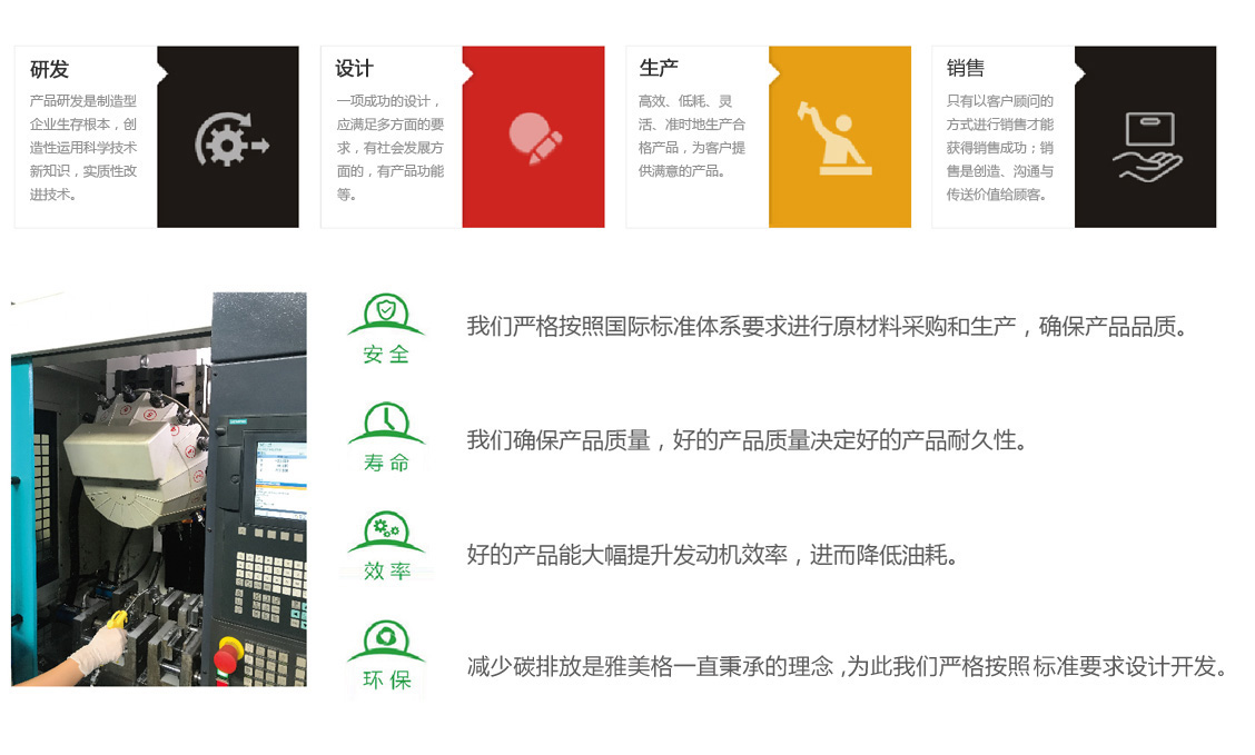 Good products can greatly improve the efficiency of the engine, thereby reducing fuel consumption. - 減少碳排放是雅美格一直秉承的理念,為此我們嚴格按照標準要求設計開發。